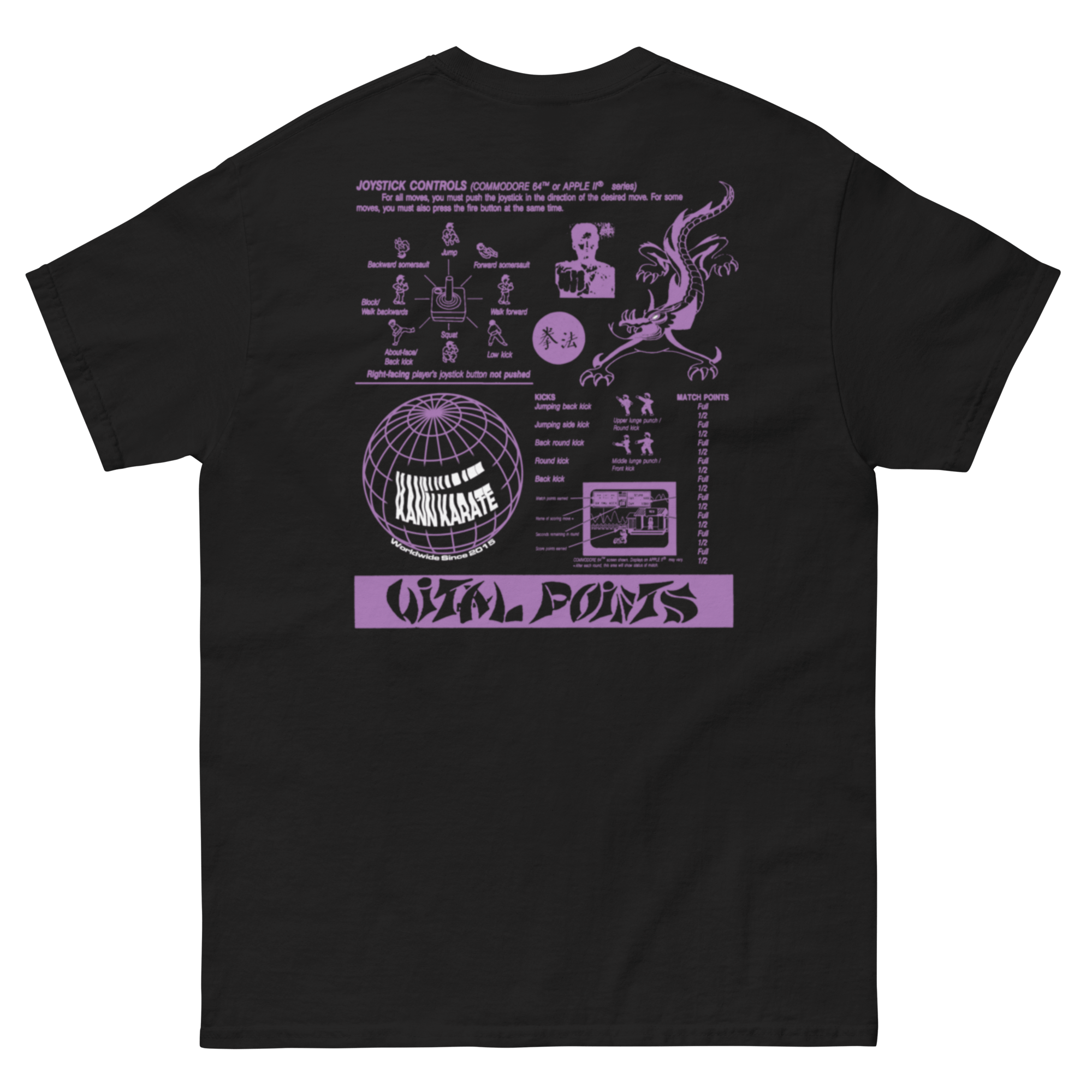 Klassisches Unisex T-Shirt aus 100 % Baumwolle (Gildan 5000) mit Kann Karate Worldwide Logo vorne und großem Vital Points Print hinten.